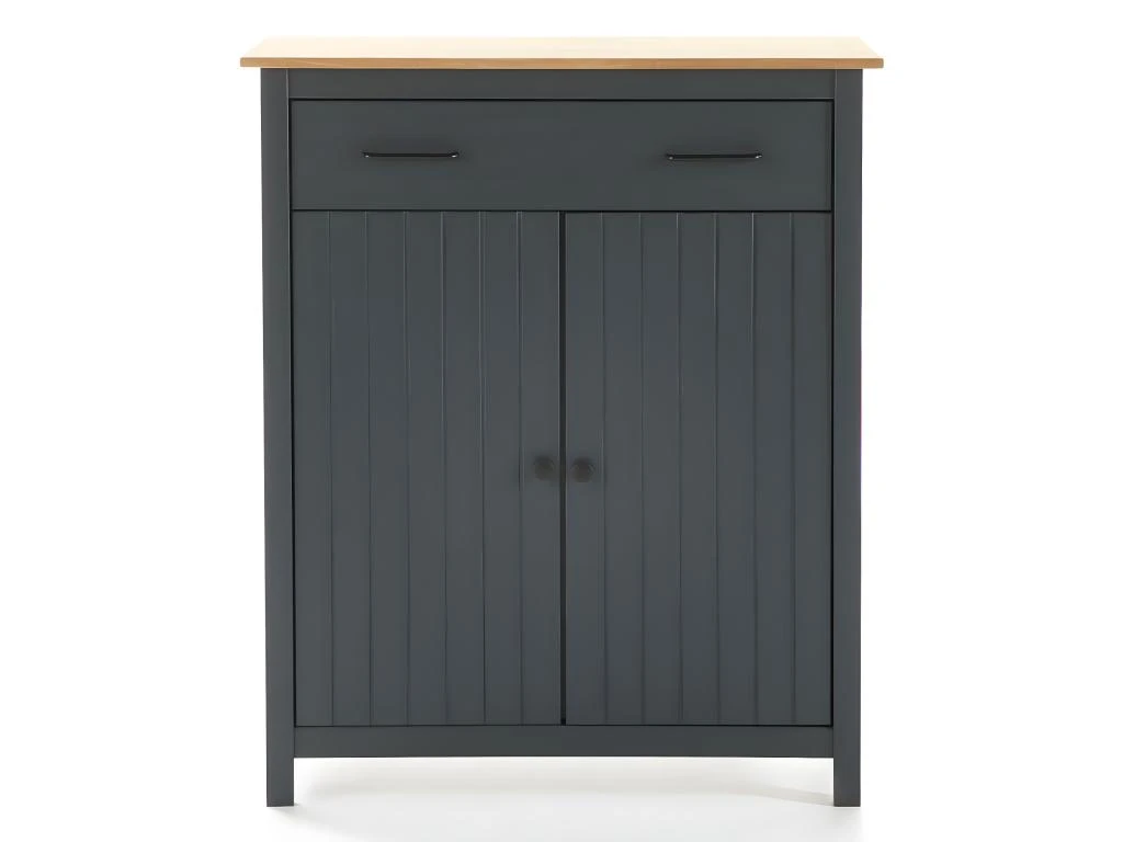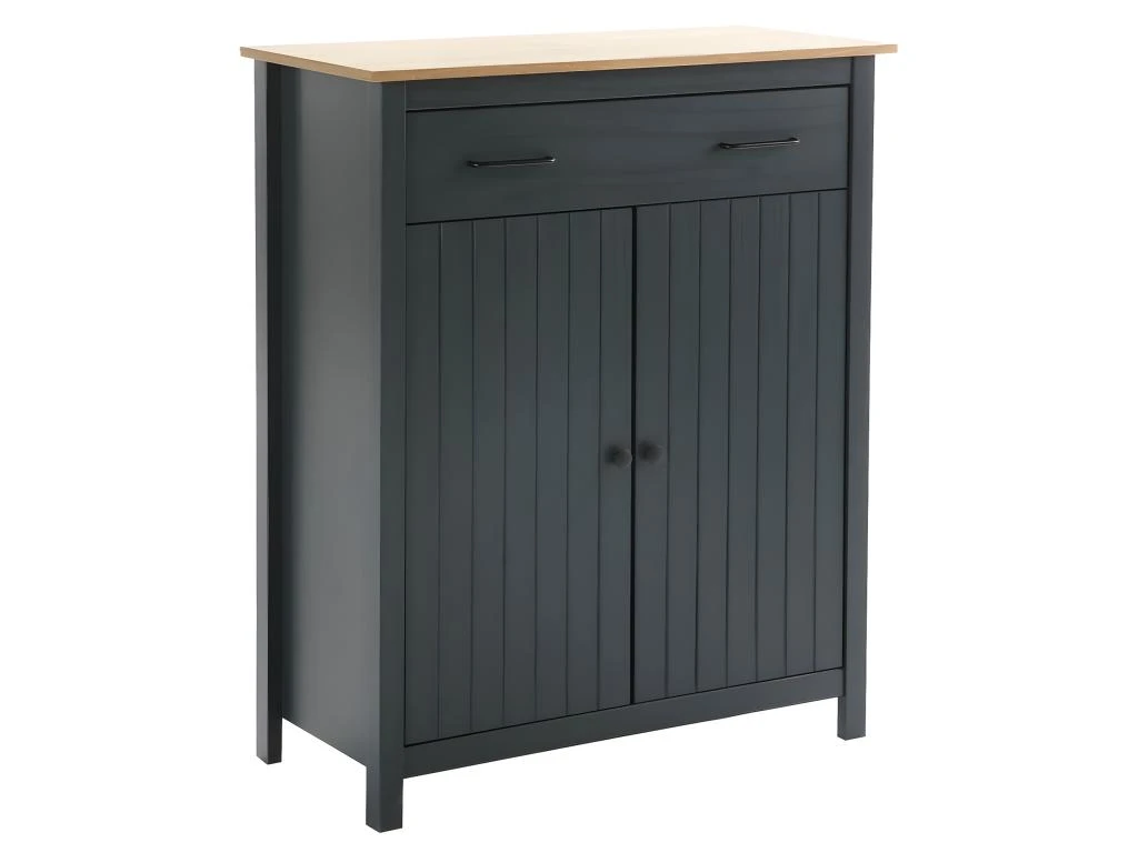 Meuble Haut 2 Portes 1 Tiroir Bois Ciré et Bleu Pétrole de la gamme Tina.