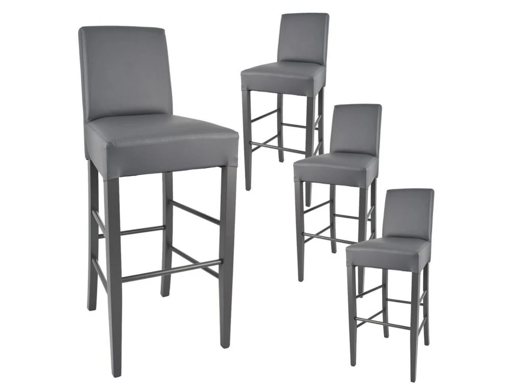 Lot de 4 Tabourets Laqués Gris et Assise Simili Cuir Gris de la gamme Tony.
