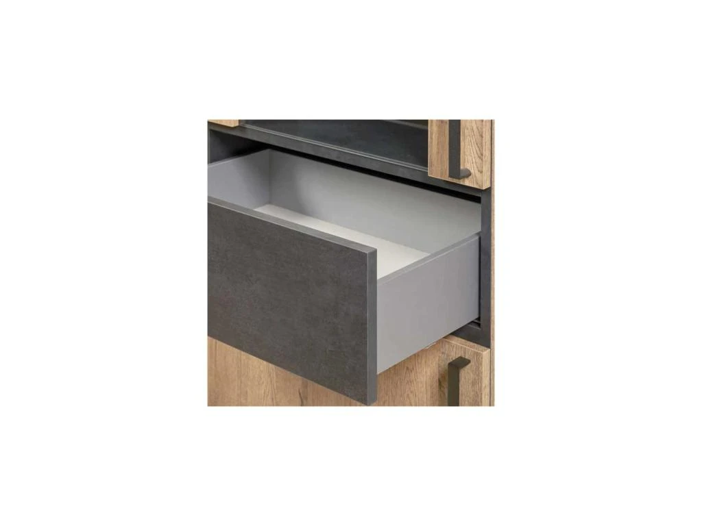 Mariant une finition bois de Chêne teinte miel au rendu plus vrai que nature et des éléments façon métal patiné, cette très belle armoire de salon ne manquera pas d’apporter de la chaleur dans votre pièce tout en mettant en avant un design au goût du jour.