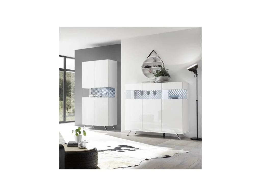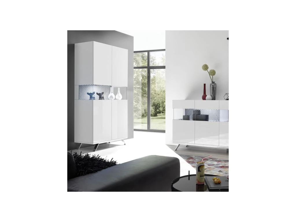 Teinte très lumineuse et ligne moderne garantissent à ce vaisselier 2 portes de faire forte impression dans votre salle à manger ou votre salon.