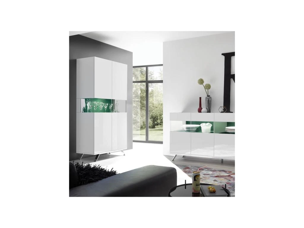 Teinte très lumineuse et ligne moderne garantissent à ce vaisselier 2 portes de faire forte impression dans votre salle à manger ou votre salon.