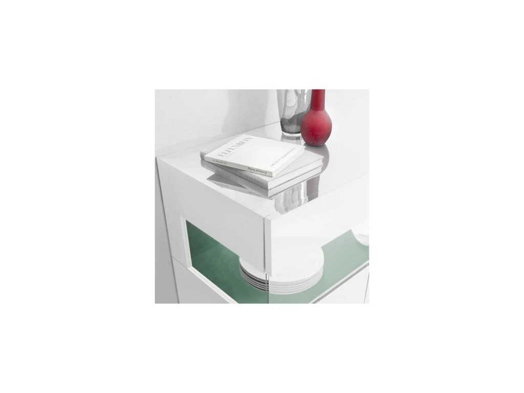 La très belle laque véritable à la teinte blanc haute brillance souligne les lignes minimalistes de ce meuble facile à placer grâce à une dimension optimisée.