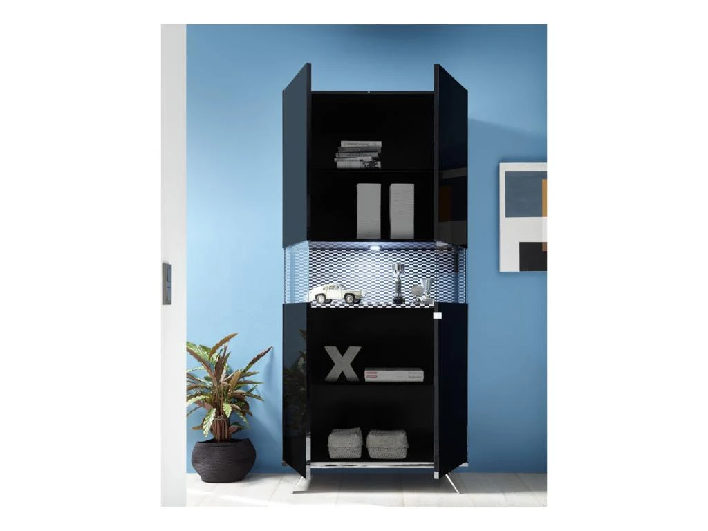 Les 2 grandes portes proposent un panneau intermédiare vitré qui recevra quelque bel objet de collection, l’éclairage LED’s mettra parfaitement en valeur le contenu de la niche et apportera un éclairage indirect agréable dans votre pièce.