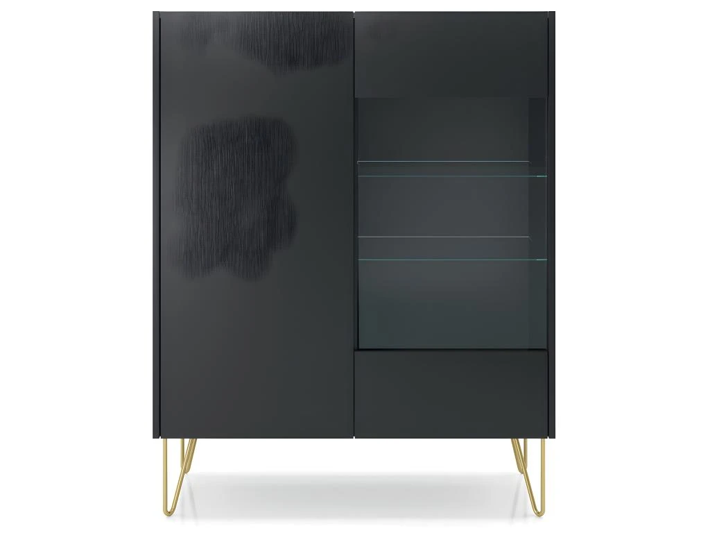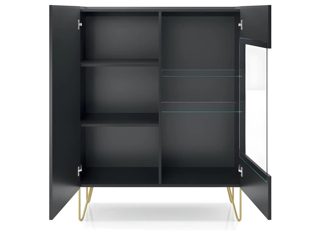 Caractéristiques : 2 portes dont 1 vitrée – 4 étagères dont 2 vitrées – Pieds hauteur 20 cm