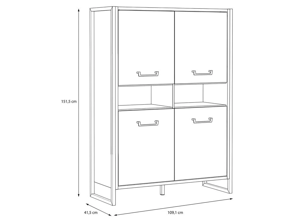 - 4 portes (4 tablettes amovibles et réglables en hauteur / 2 tablettes fixes) / 2 niches / Vendu sans éclairage LED.