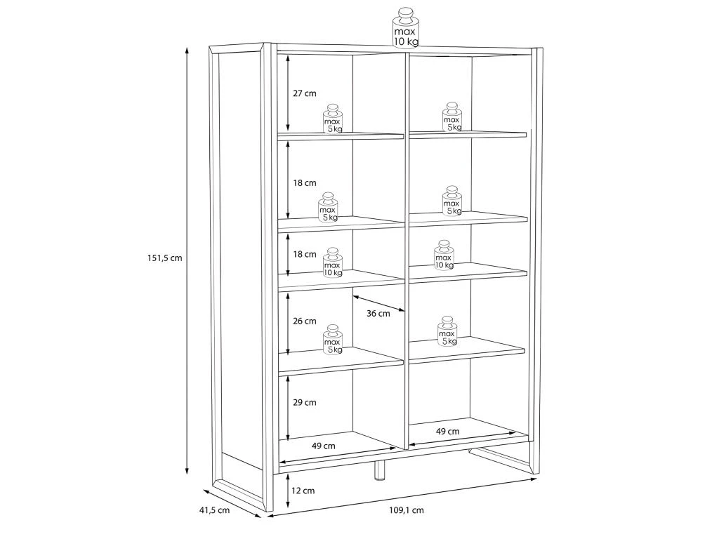 - POIDS max supporté : Plateau supérieur : 20 kg / Niches : 10 kg / Tablettes amovibles : 5 kg.