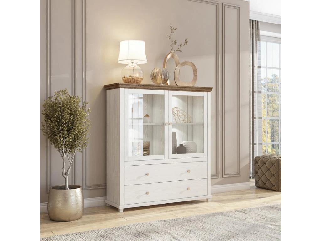 – CARACTÉRISTIQUES : Vaisselier avec 2 portes battantes, 2 tiroirs et de nombreuses étagères. Grand espace de rangement grâce à ses nombreuses niches.