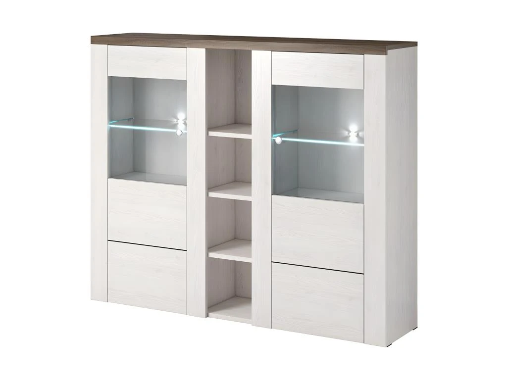 Donnez une touche de modernité à votre salon avec ce vaisselier design de la collection SANTIAGO. Avec ses deux portes et ses quatre niches centrales, il offre un espace de rangement généreux pour votre vaisselle et vos objets de décoration.