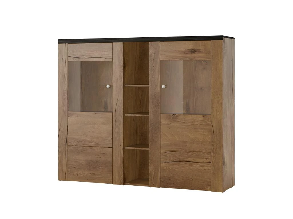 Apportez une touche unique et tendance à votre salon avec ce magnifique vaisselier de la collection SANTIAGO ! Ce meuble est conçu en panneaux de particules et MDF de première qualité, offrant ainsi une solidité et une durabilité remarquable.