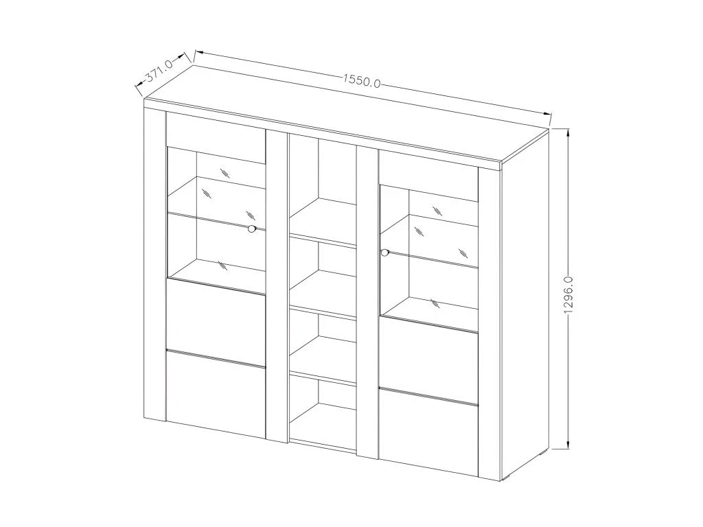 Avec ses dimensions de 155x130x37 cm, ce vaisselier offre un bel espace de rangement pour vos objets précieux. Ses deux portes battantes partiellement vitrées et ses quatre niches centrales vous permettent d’organiser et d’exposer vos vaisselles et décorations avec style.