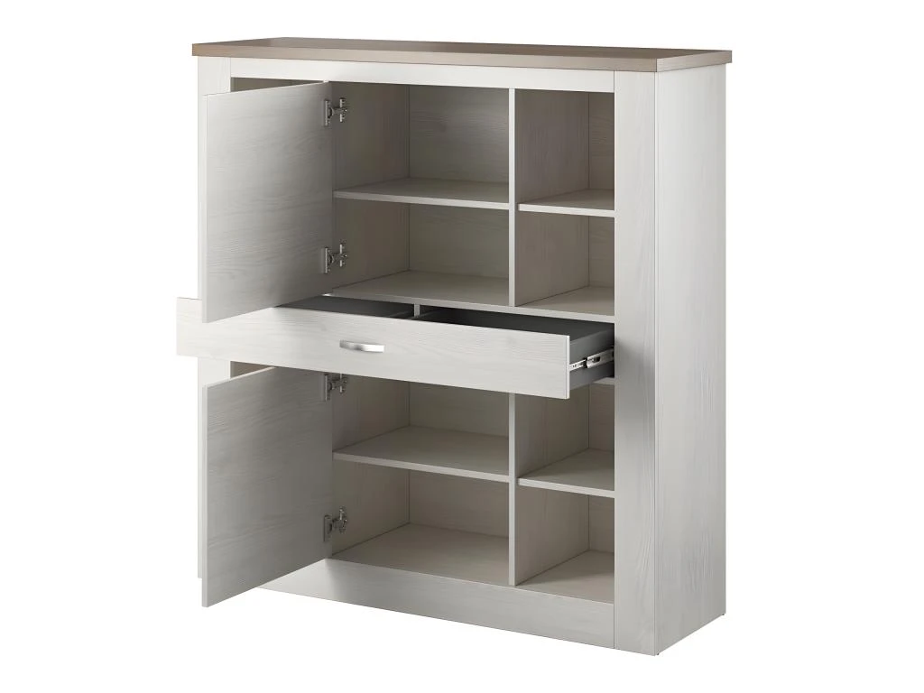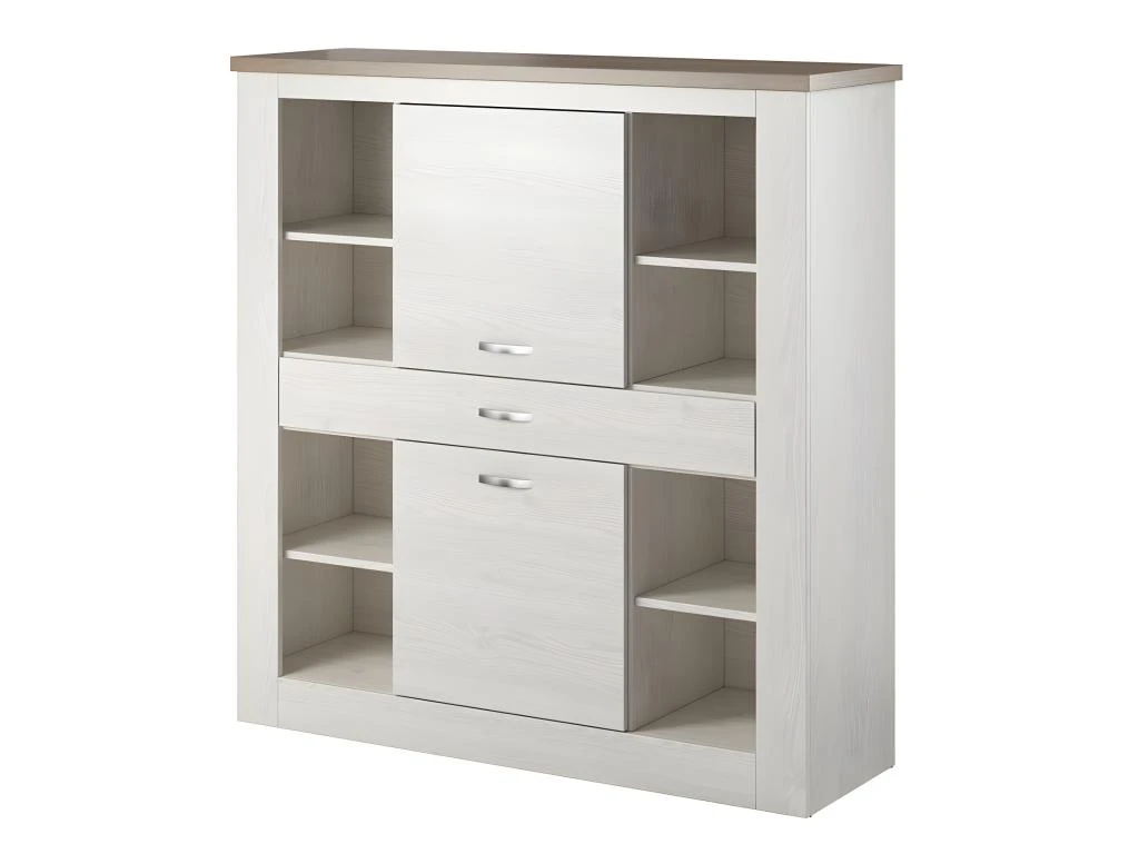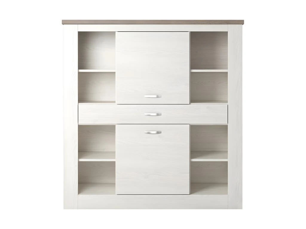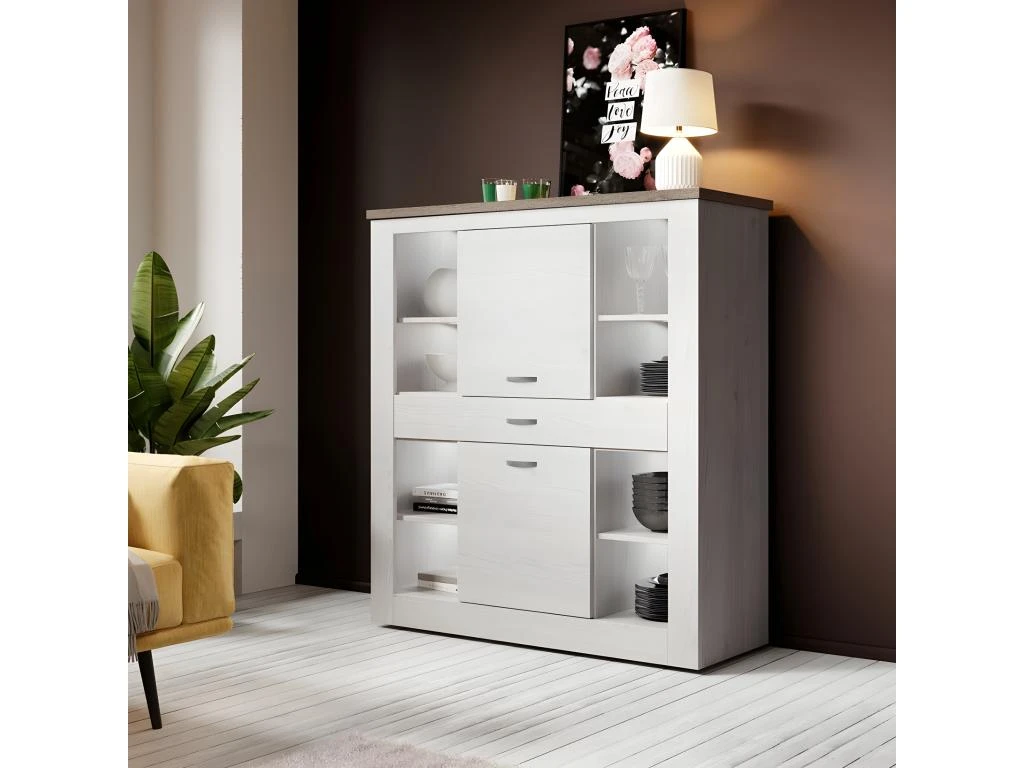 Conçu en panneaux de particules et MDF de première qualité, ce vaisselier allie solidité et esthétisme. Son coloris blanc effet bois et chêne lui donne un aspect rustique et campagne, idéal pour une ambiance chaleureuse et accueillante dans votre intérieur.
