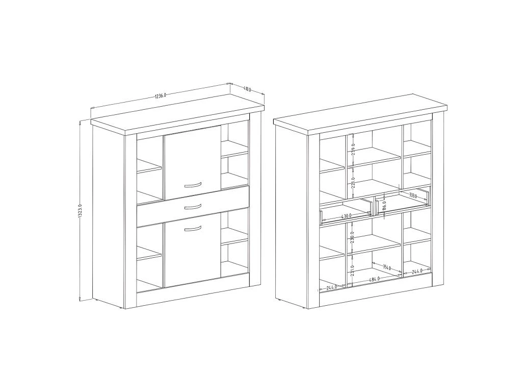 Avec ses dimensions de L 123,6 x H 132,3 x P 41 cm, ce vaisselier XL s’intègre facilement dans votre espace. Son système d’ouverture par battant est pratique et fonctionnel.