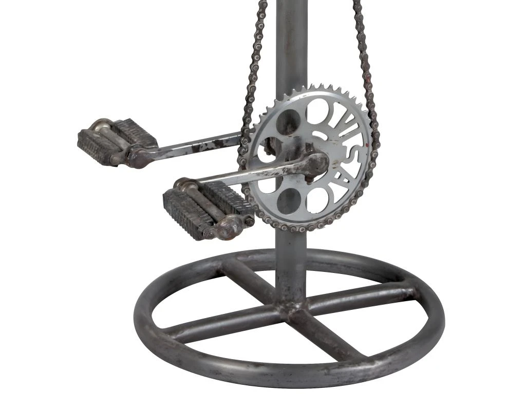 Proposant un style industriel pour le moins original, ce tabouret ne pourra qu’attirer l’attention de vos convives avec son repose-pieds en forme de pédalier. Piètement en acier, finition patiné vieilli. Assise en bois.