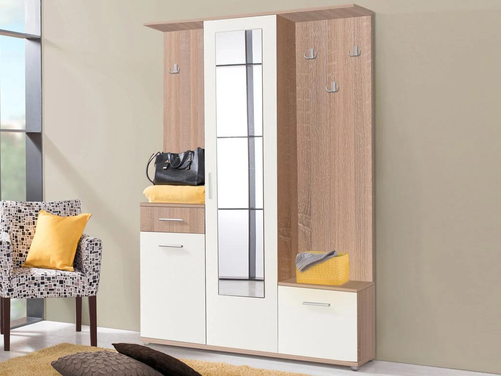 Organisez votre entrée comme il se doit avec le vestiaire CAMOLA. Ce meuble se compose de plusieurs patères, de nombreux rangements intérieurs et enfin d’un miroir pour ajuster les derniers détails de votre tenue !