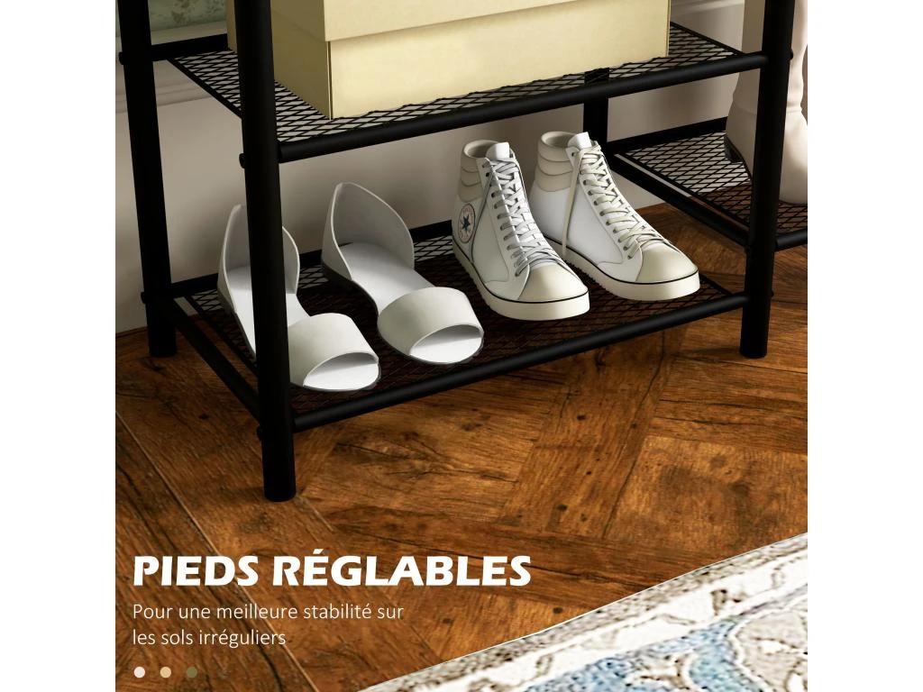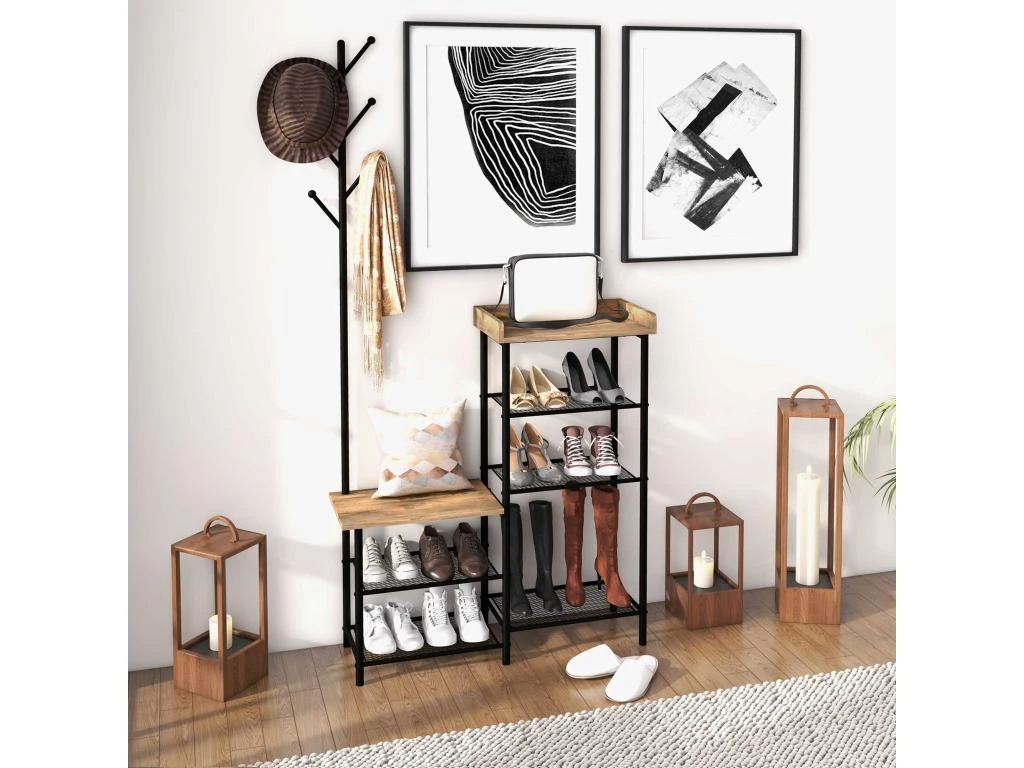 – Etagère à chaussures, porte-manteaux et banc 3 en 1
