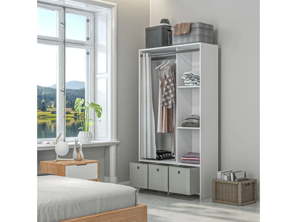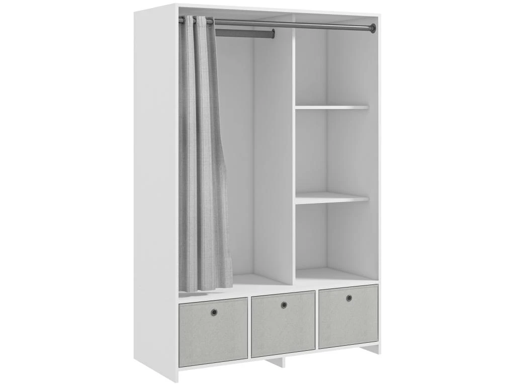 – Multi-rangement : barre de penderie, 3 niches, 3 tiroirs tissu