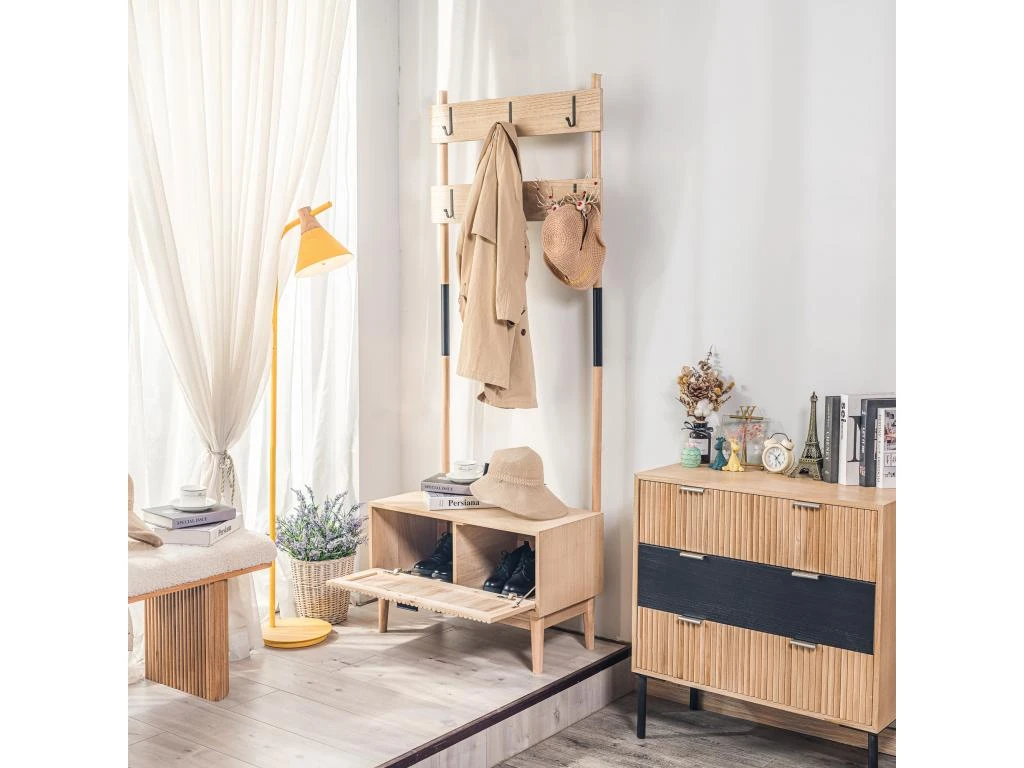 Utilisation: Doté de rangements ou vous pouvez placer vos chaussures et autres objets, le vestiaire CANNON est également dote d’un espace porte manteau pratique avec 6 crochets