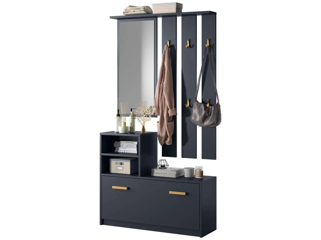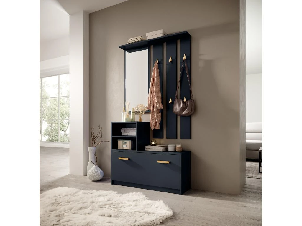 – armoire à chaussures, 2 niches ouvertes, portemanteau mural avec 6 crochets, miroir, étagère à chapeaux