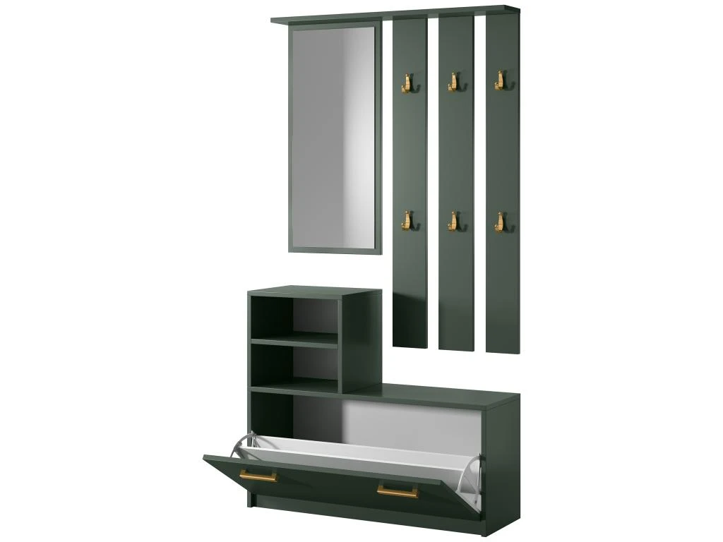 – armoire à chaussures, 2 niches ouvertes, portemanteau mural avec 6 crochets, miroir, étagère à chapeaux