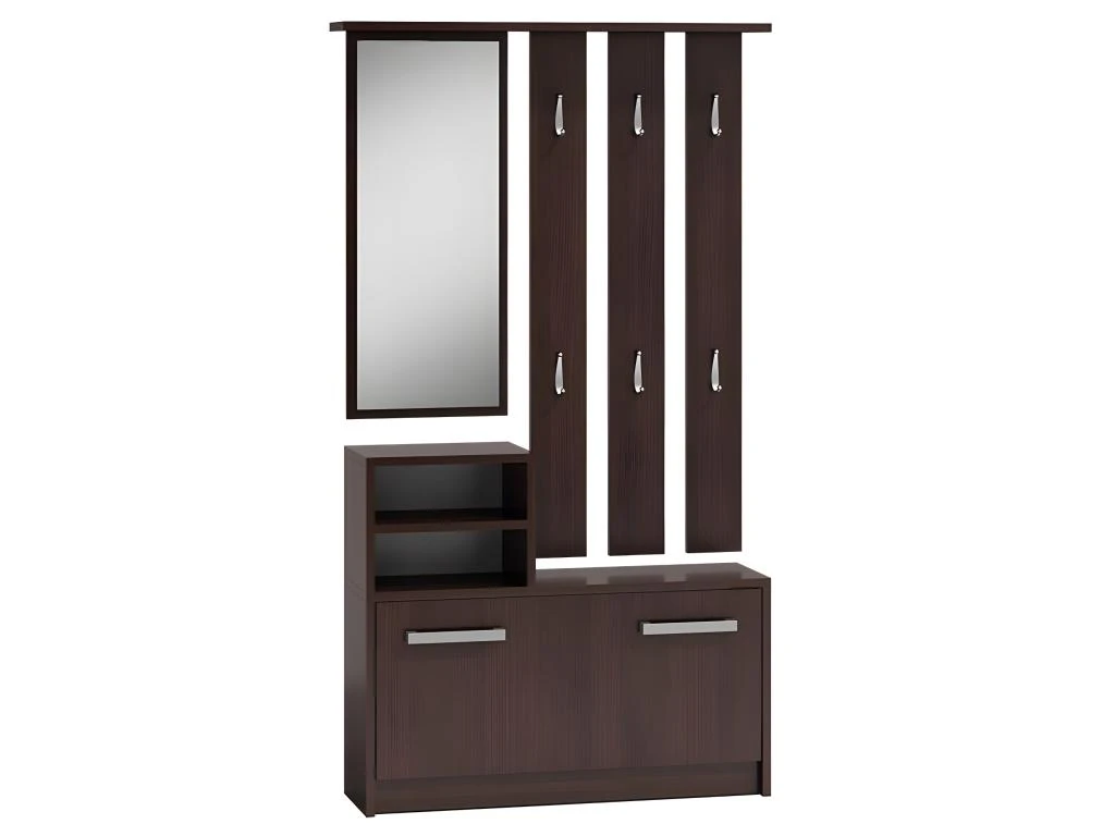 – armoire à chaussures, 2 niches ouvertes, portemanteau mural avec 6 crochets, miroir, étagère à chapeaux