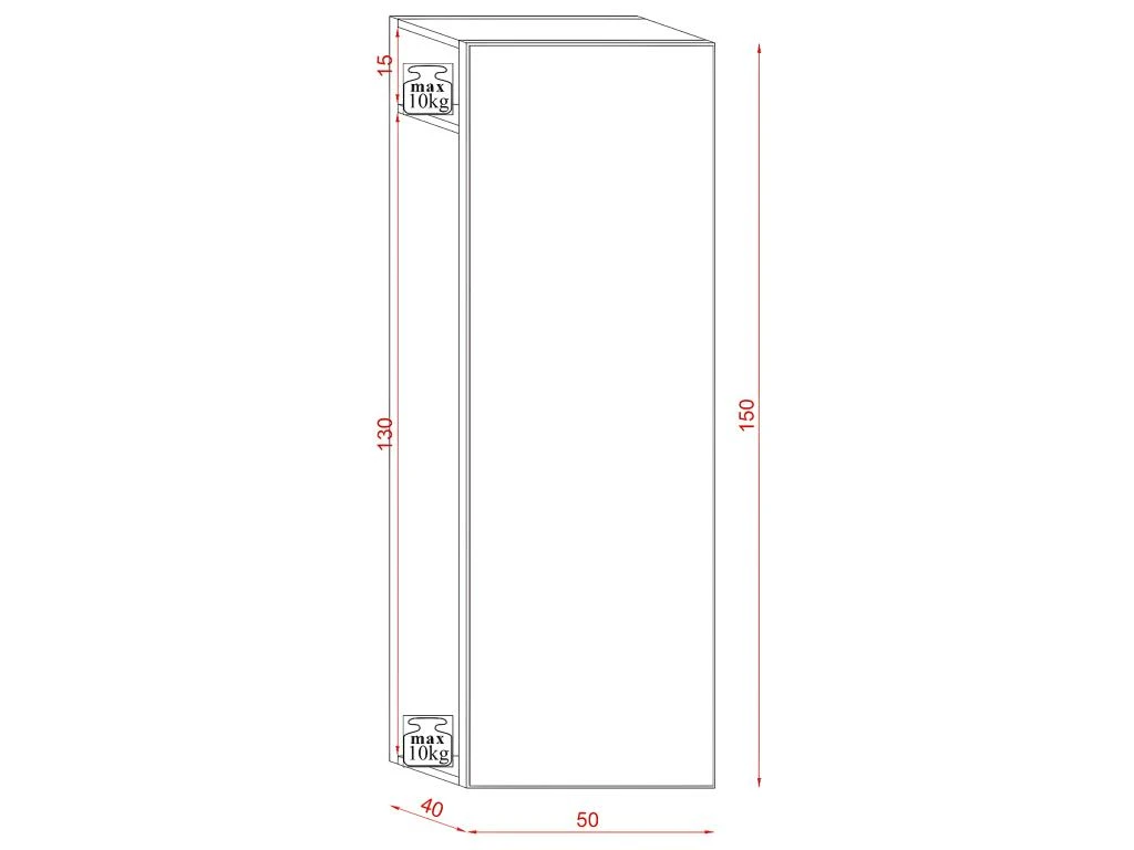 - Longueur 50 cm x Largeur 40 cm x Hauteur 150 cm – Poids net : 46 kg.
