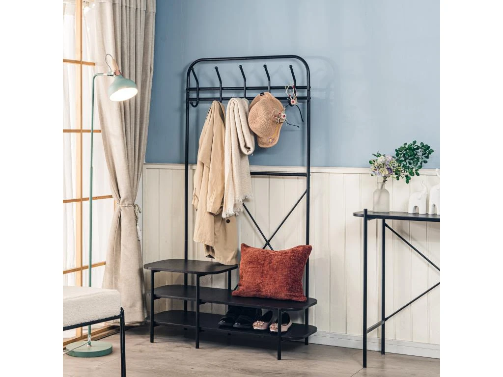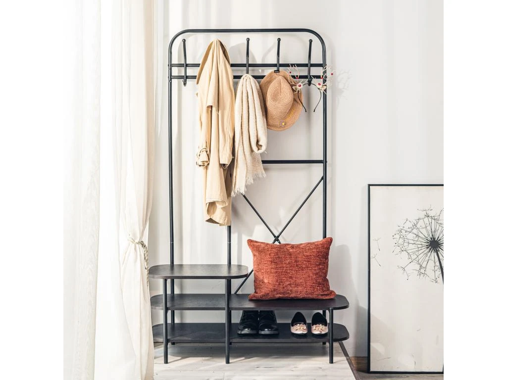 Utilisation: Doté de 3 niveaux de rangements ou vous pouvez placer vos chaussures et autres objets, le vestiaire LESTER est également dote d’un espace porte manteau pratique avec 5 crochets