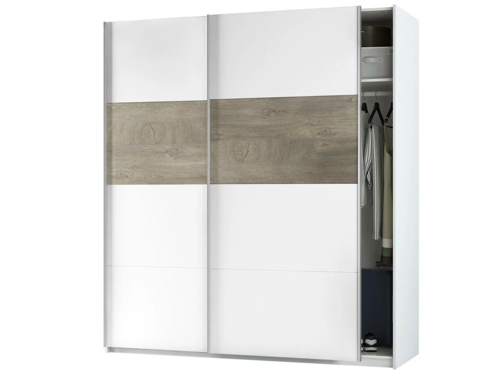 CARACTÉRISTIQUES TECHNIQUES – Produit en panneau d’aggloméré mélaminé d’une épaisseur de 15 mm, un matériau résistant aux chocs et aux rayures, durable et imperméable – Bords finis en mélaminé d’une épaisseur de 0,6 mm – Dos mobile de couleur blanche en MDF avec un épaisseur de 3 mm – Classification selon teneur ou dégagement de formaldéhyde TYPE E1 – Glissières métalliques avec frein, pour portes coulissantes – Tringle à vêtements coulissante en aluminium – Poignées en aluminium (sur le profil de la porte) – Poids maximum du produit supporté: Kg 50 – Poids maximum supporté de l’étagère: 8 Kg – Poids maximum supporté du tube de suspension: 8 Kg.