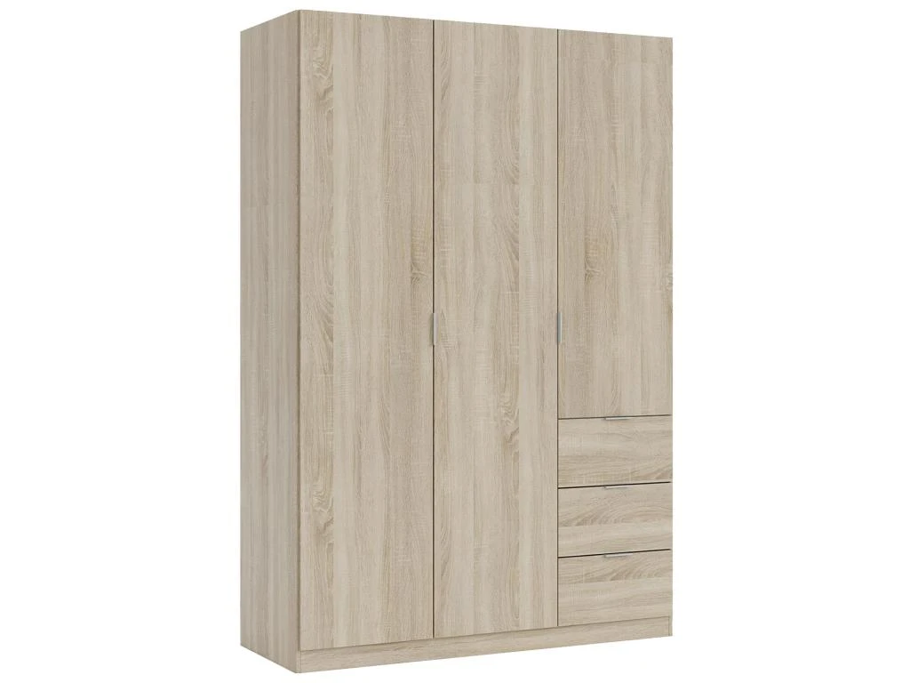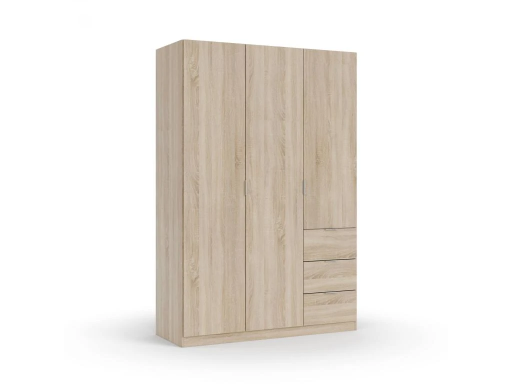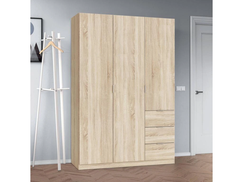 Vestiaire Ddermak, Armoire De Chambre à 3 Portes Et 3 Tiroirs, Armoire Avec 3 étagères Et Barre De Cintre, 135x52h200 Cm, Chêne