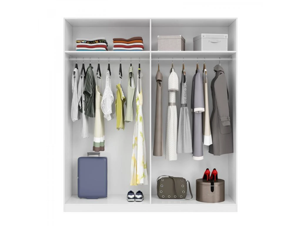 CARACTÉRISTIQUES TECHNIQUES – Produit en panneau d’aggloméré mélaminé d’une épaisseur de 15 mm, un matériau résistant aux chocs et aux rayures, durable et imperméable – Bords finis en mélaminé d’une épaisseur de 0,6 mm – Dos mobile de couleur blanche en MDF avec un épaisseur de 3 mm – Classification selon la teneur ou le dégagement de formaldéhyde de TYPE E1 – Charnières métalliques pour les portes battantes – Poignées en aluminium (deux unités) – Poids maximum du produit supporté: 50 Kg – Poids maximum supporté de l’étagère: 8 Kg – Poids maximum du tube supporté cintre: 8 kg.