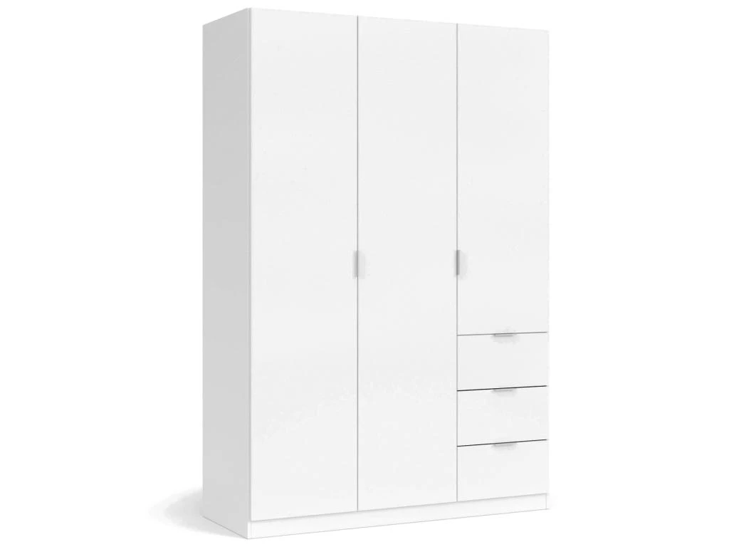 STRUCTURE ET UTILISATION – Armoire complète avec trois portes battantes, trois tiroirs, trois étagères fixes à l’intérieur (dont deux étagères réglables en hauteur dans la porte droite), grâce à l’organisation interne de ses espaces, elle offre un grand espace de rangement – L’ensemble la structure du meuble est parfaite pour meubler une chambre double, une chambre d’enfants ou une chambre d’amis de manière peu encombrante – Les étagères internes combinées à la tringle à vêtements vous permettront de ranger les vêtements et les robes de manière ordonnée.