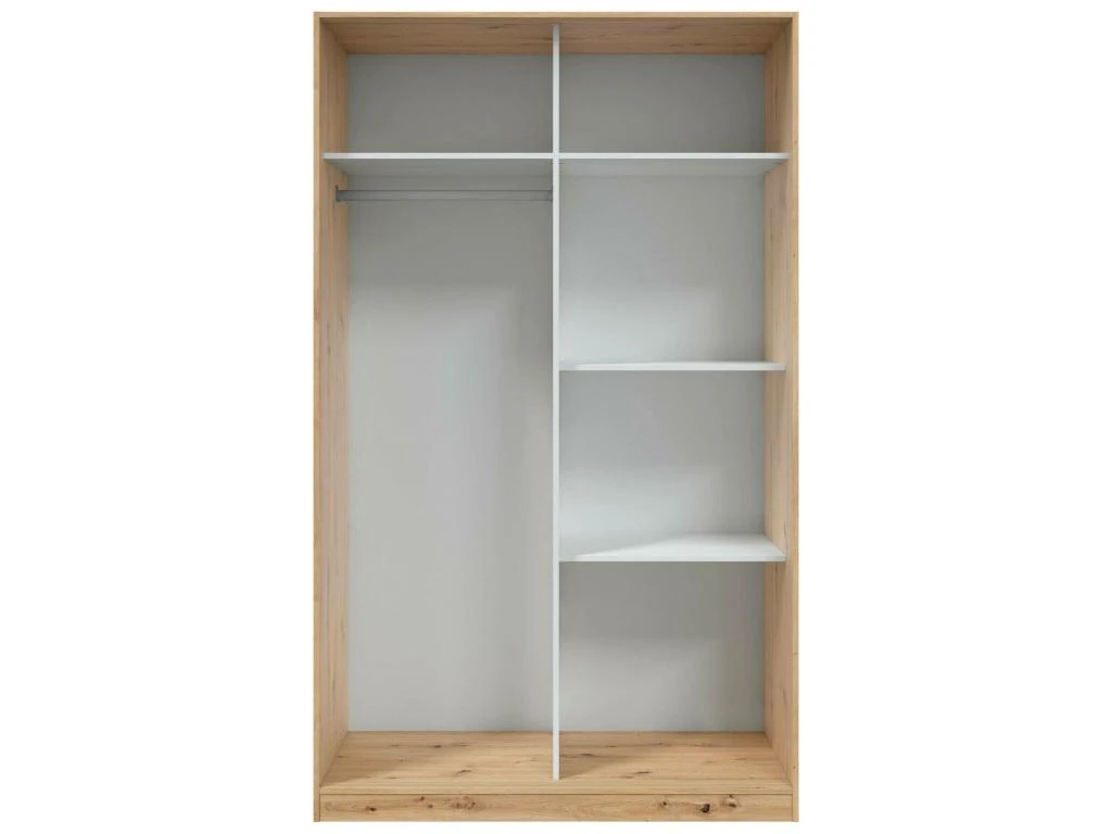 CARACTÉRISTIQUES TECHNIQUES – Produit en panneau d’aggloméré mélaminé d’une épaisseur de 15 mm, un matériau résistant aux chocs et aux rayures, durable et imperméable – Bords finis en mélaminé d’une épaisseur de 0,6 mm – Dos mobile de couleur blanche en MDF avec un épaisseur de 3 mm – Classification selon la teneur ou le dégagement de formaldéhyde TYPE E1 – Guides de coulissement des portes en ABS – Tringle de suspension en aluminium extractible – Poignées en ABS blanc – Profil adhésif de 1 cm de large de couleur gris aluminium mat – Poids maximum du produit supporté: Kg 50 – Poids maximum supporté de l’étagère: 5 Kg – Poids maximum supporté du tube de suspension: 8 Kg.