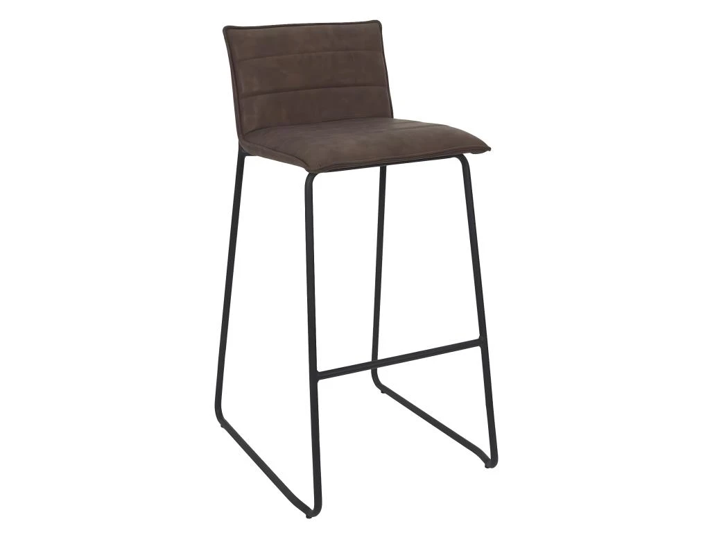Piétement en fer coloris noir. Revêtement assise et dossier en polyuréthane coloris marron. Garnis de mousse.